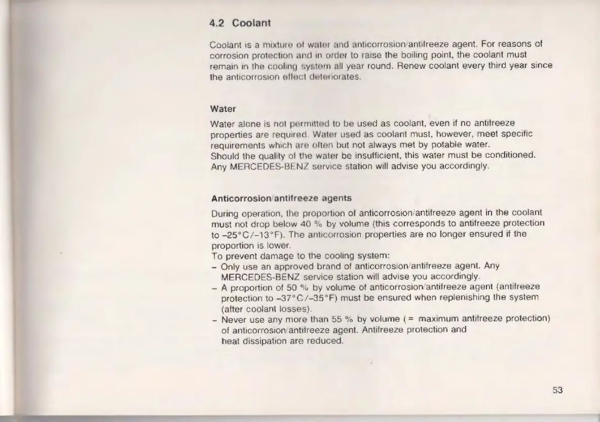 must not drop below 40 % by volume (this corresponds to antifreeze protection