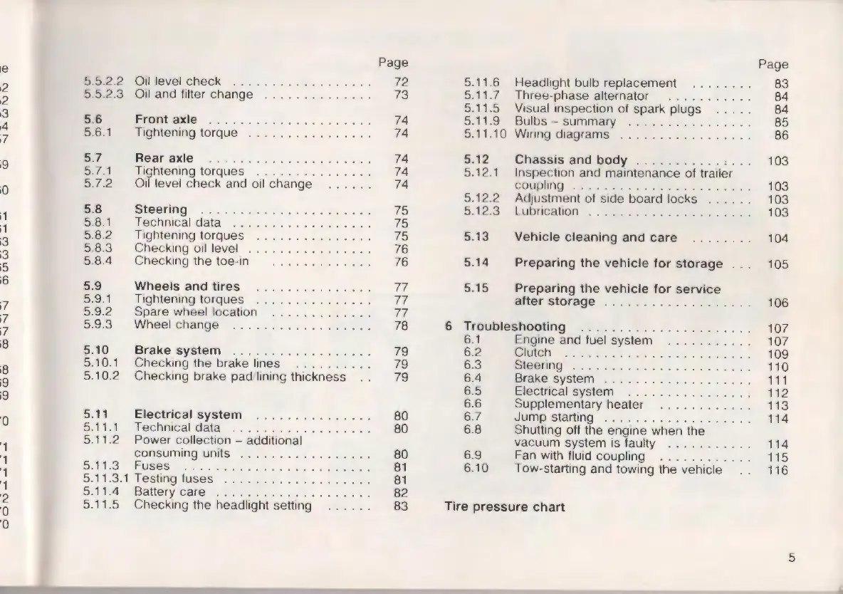 5.6 Front axle .................... .