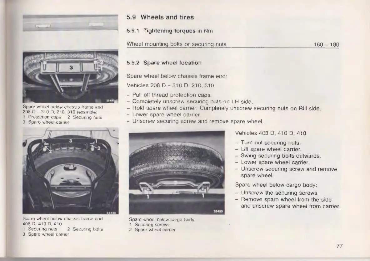 - Hold spare wheel earner. Completely unscrew securing nuts on RH side.