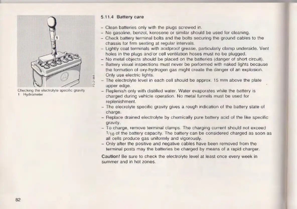 - Replace drained electrolyte by chemically pure battery acid of the like specific