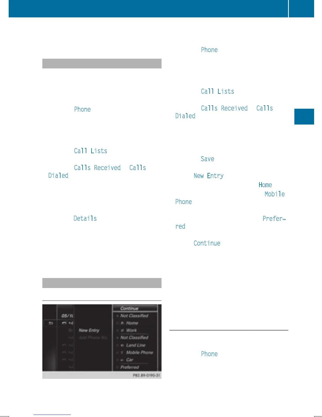 To select Call Lists: turn and press the