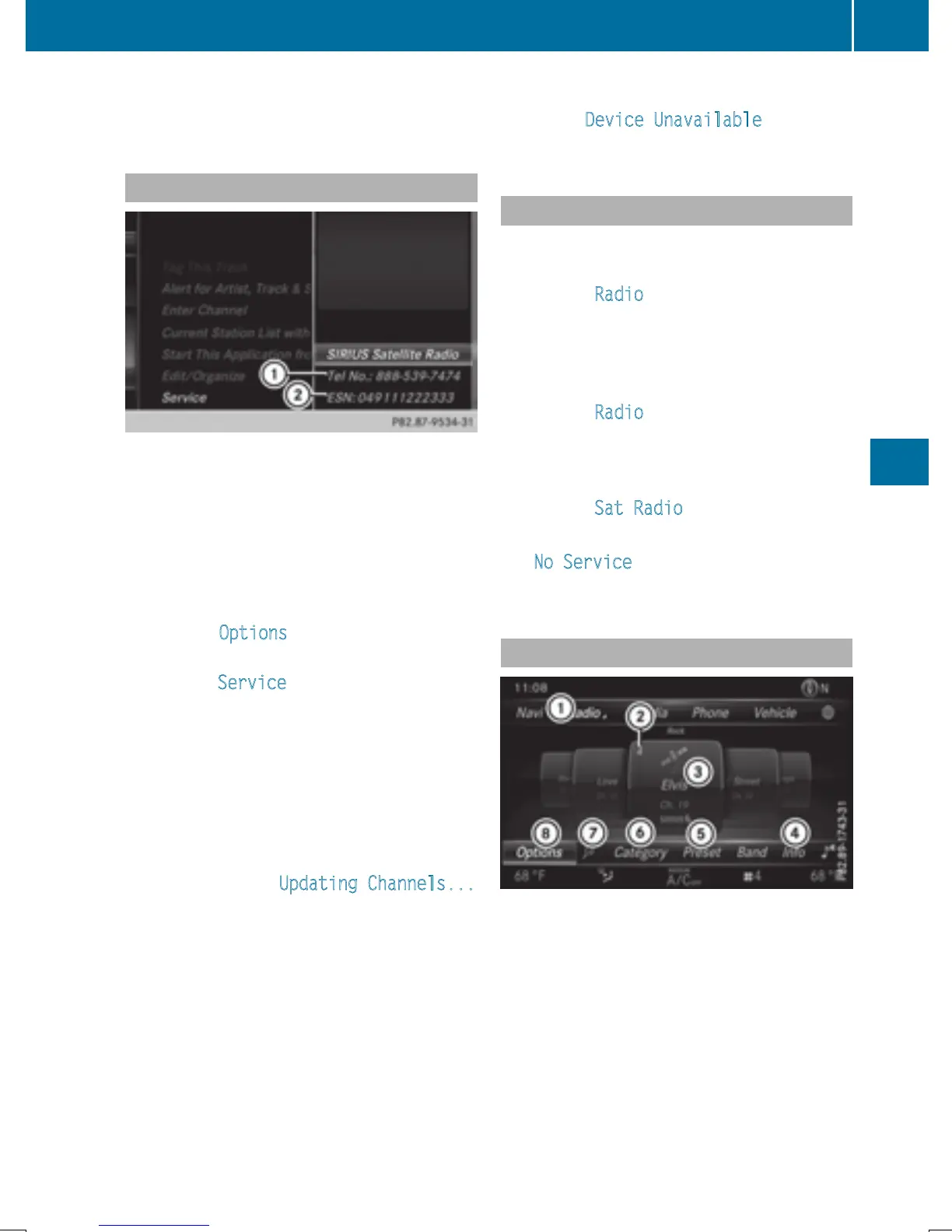 by the satellite radio main menu.