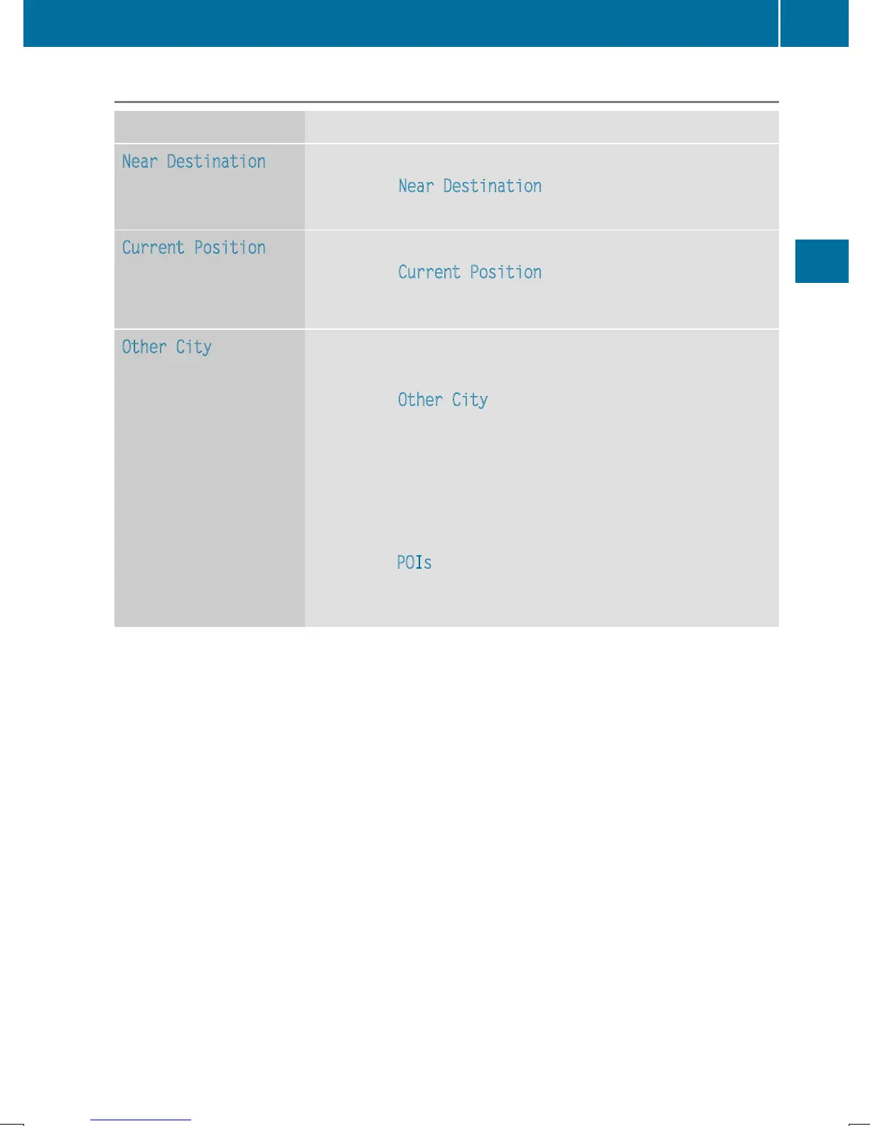 Call up the POI menu (Y page 69).