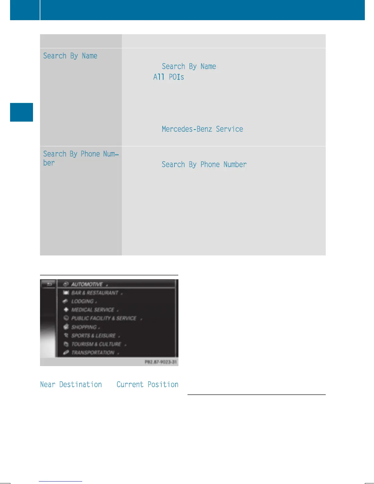 Call up the POI menu (Y page 69).