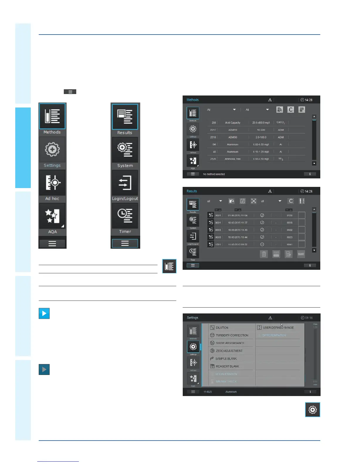The main menus “Settings (Method Settings)", “Ad hoc", “AQA",