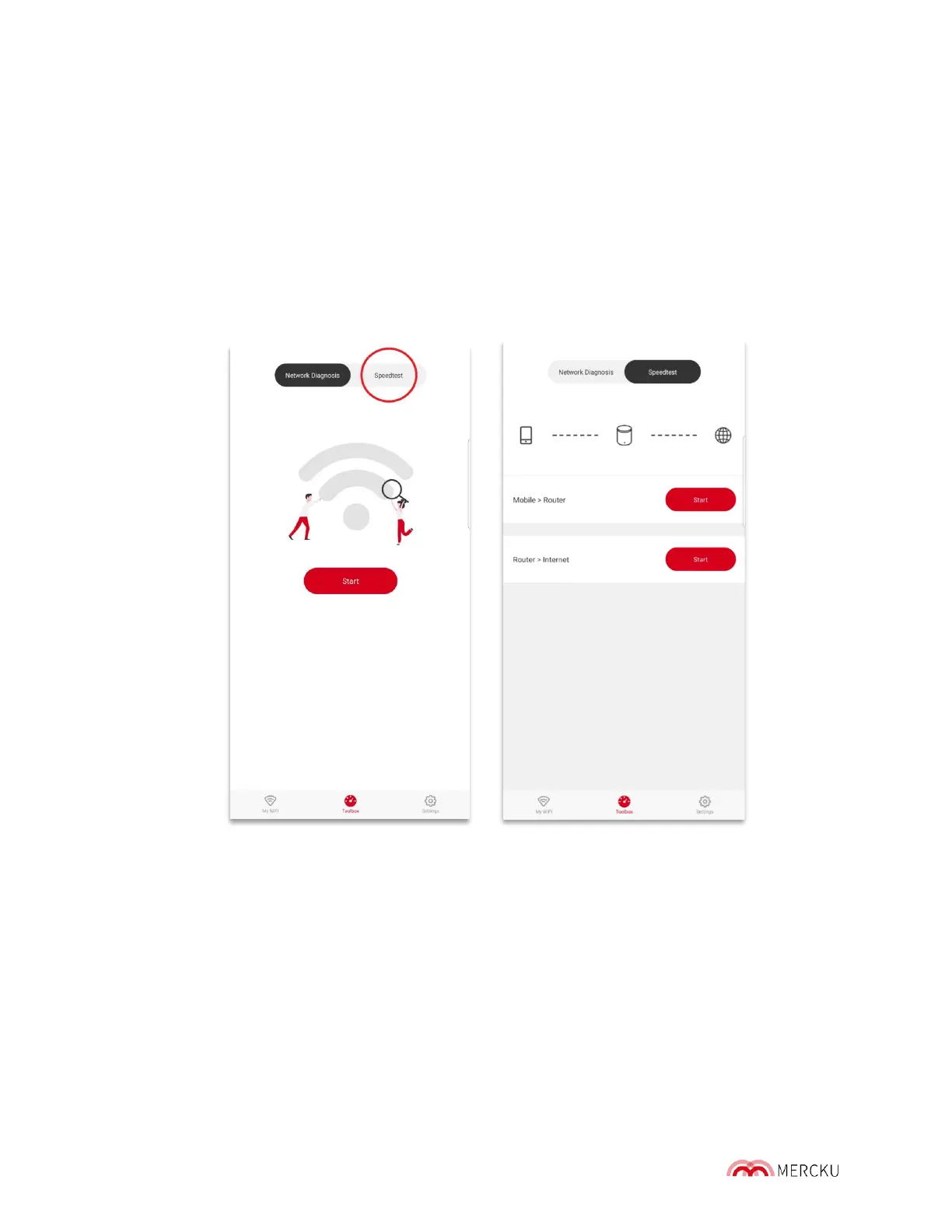2. Select Toolbox > Speedtest > Beside Mobile>Router, press Start