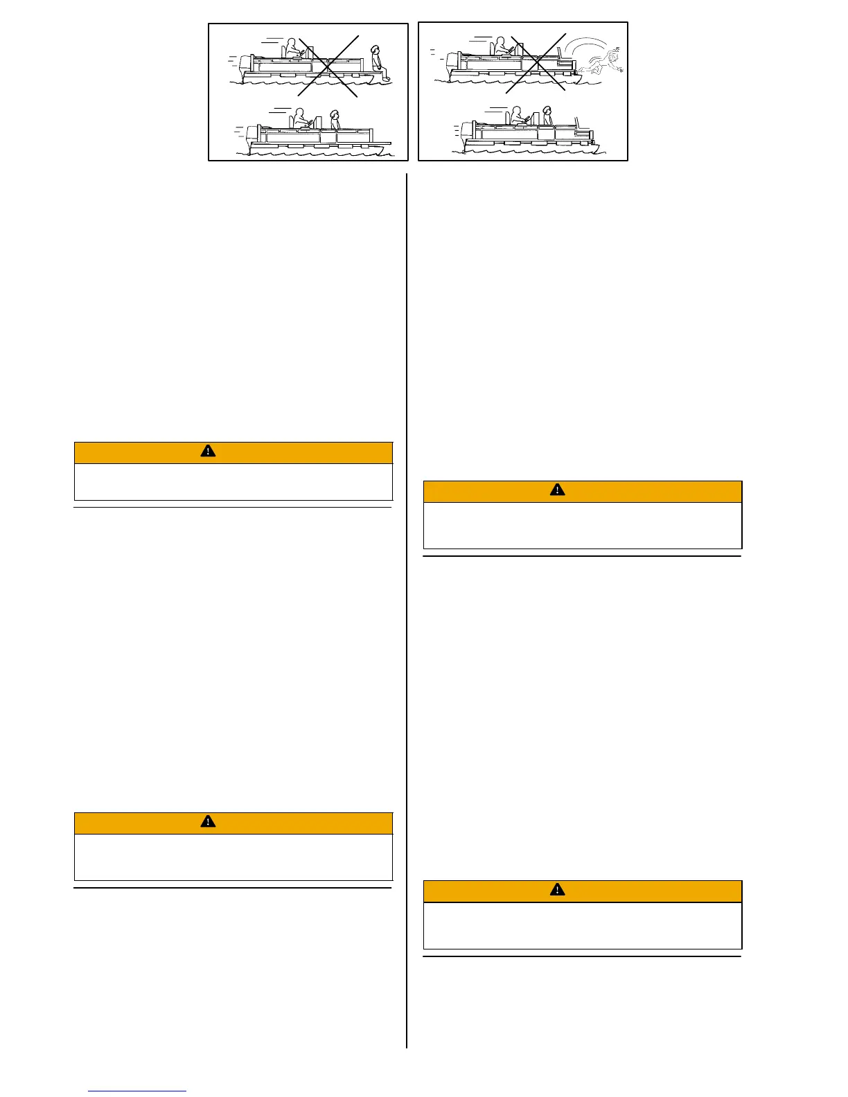 or deck boat and being run over by the outboard. Stay back from the front