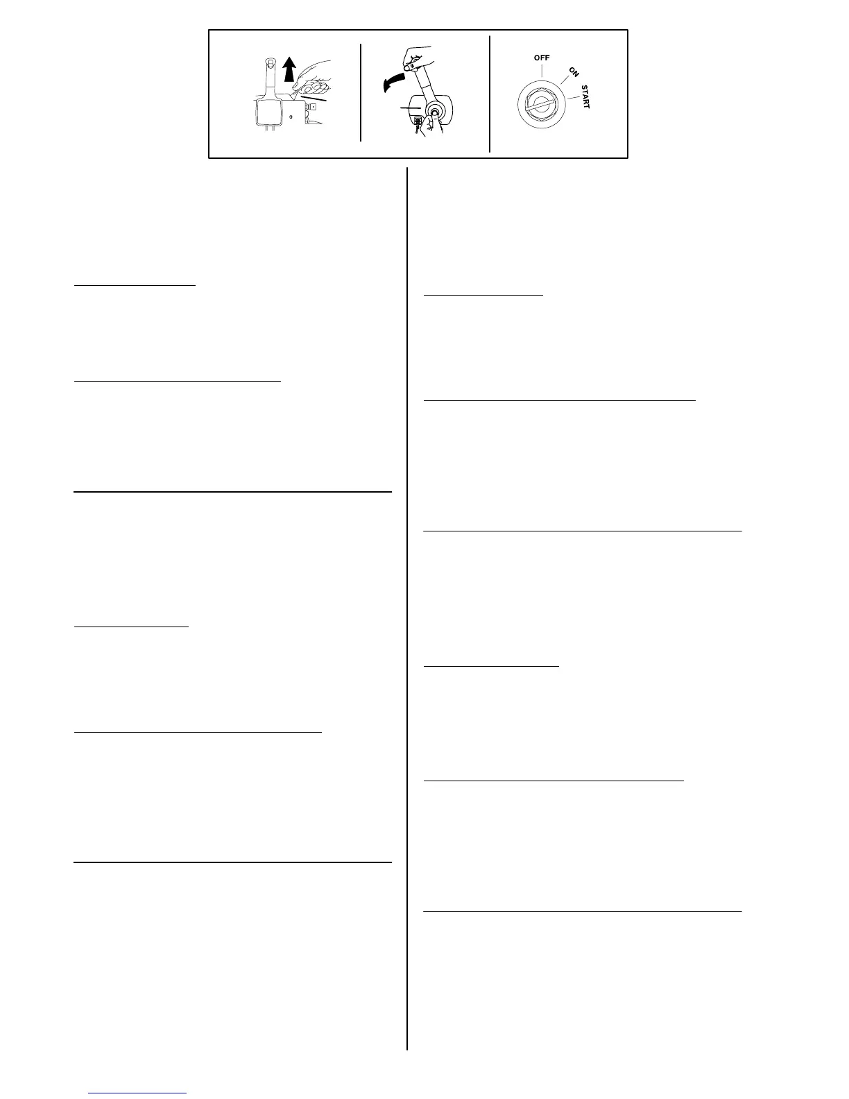 key to START position. Release the key when engine starts. If engine fails to start