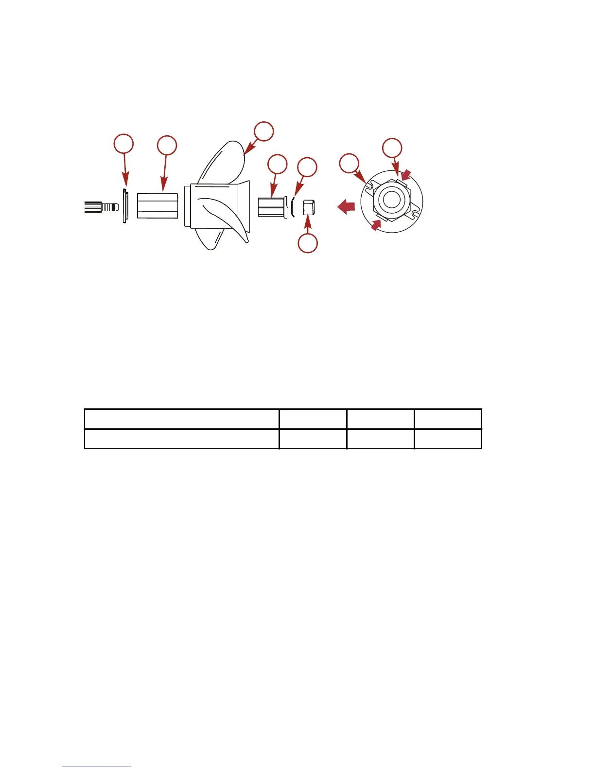 1. Install the propeller onto the shaft with the supplied components as