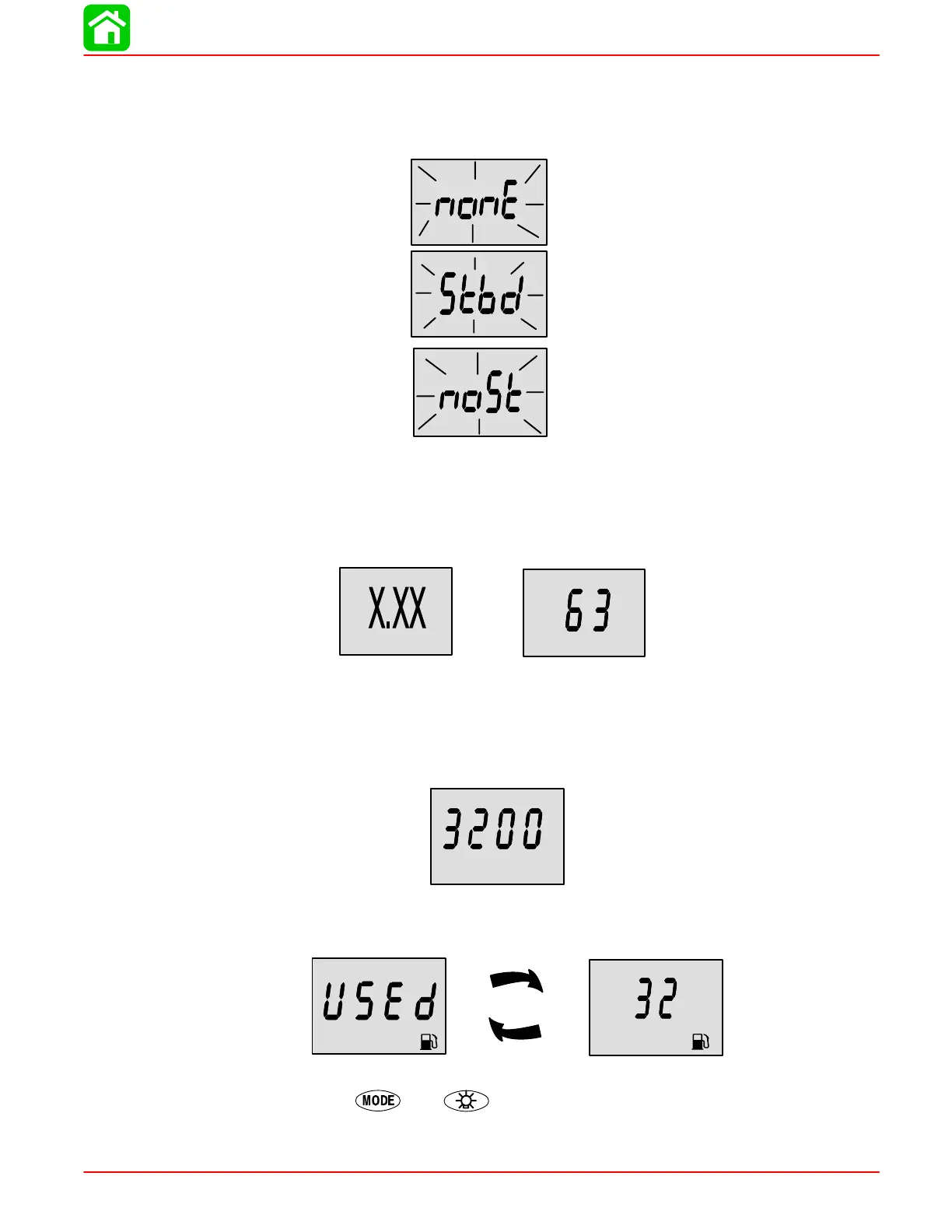 of the following other flashing messages: (B) “Stbd”or, (C) “noSt” refer to the “Set–Up Errors