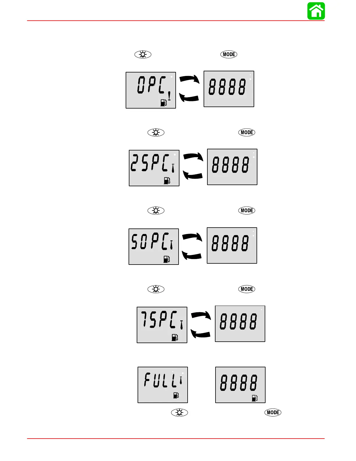 Calibration 25% – The “25 percent” display alternates between percent of tank capacity