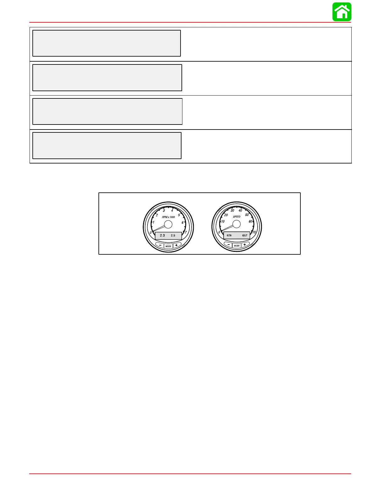 Tachometer Display Screen: Speedometer Display Screen: