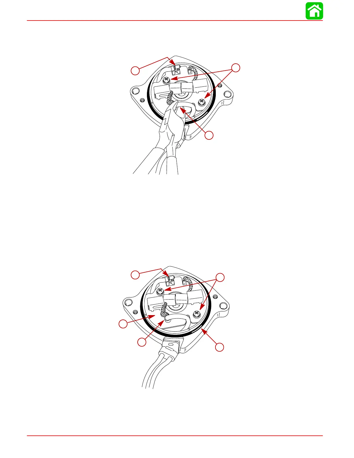 7. Connect spade connector motor lead to brush card connector.