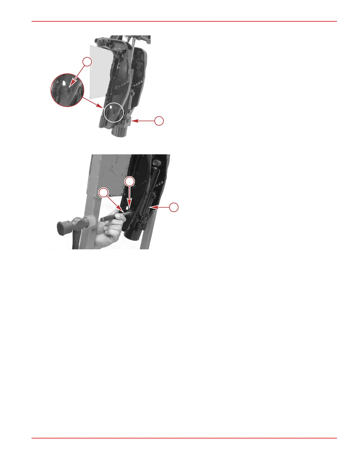 9. Using a drift punch, remove the pivot pin from the power tilt assembly.