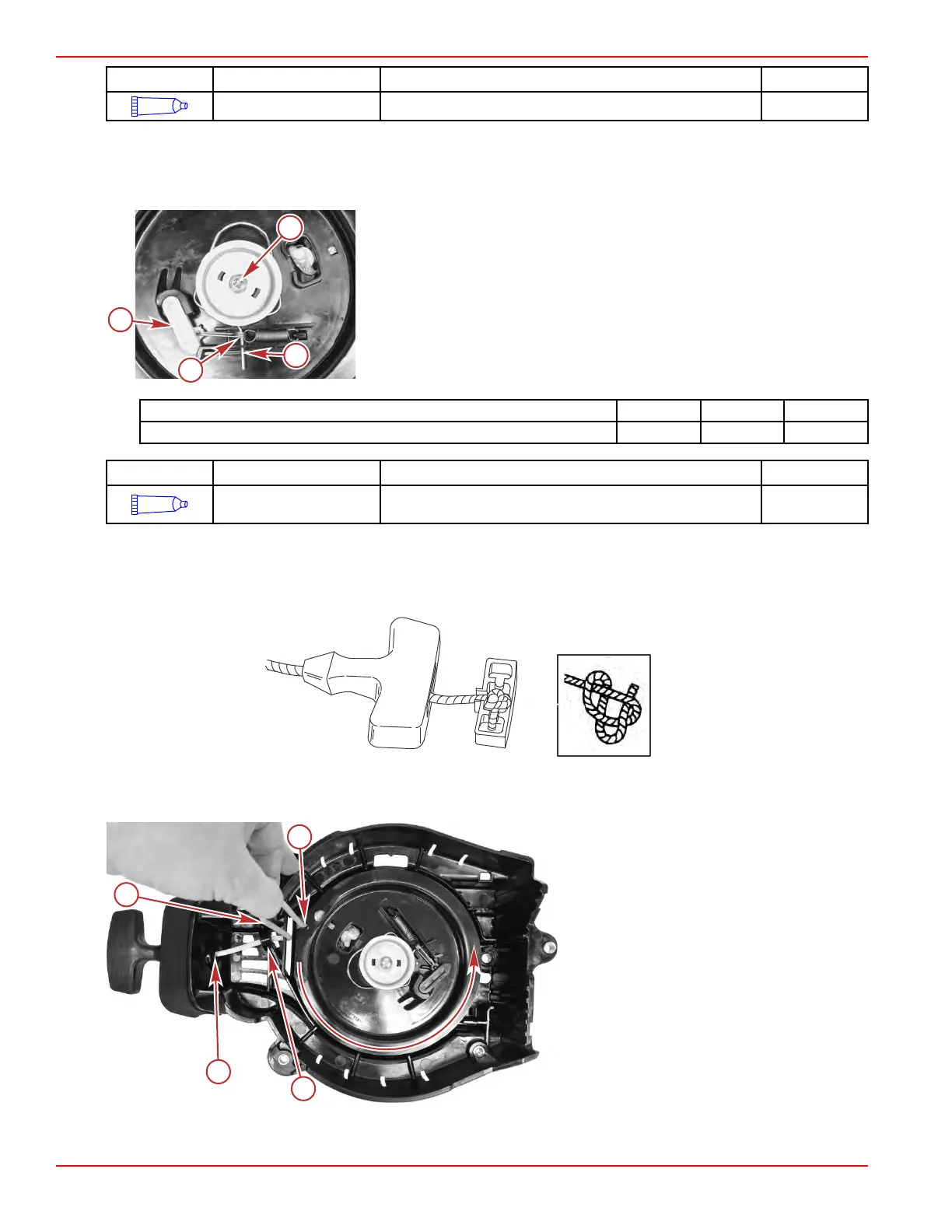 c. Tie a knot as shown. Place the rope knot into the handle cap, and insert the cap into the recoil handle.