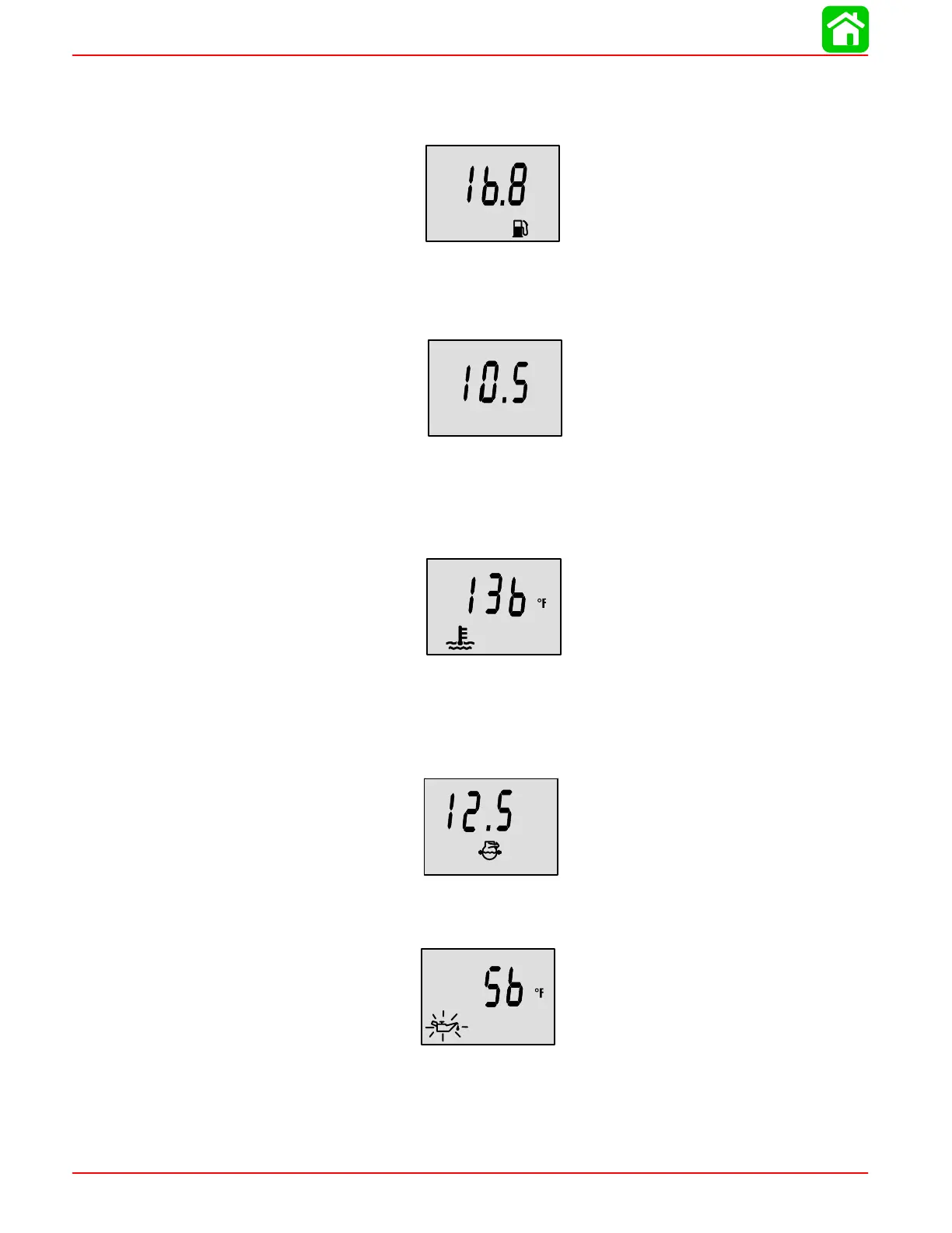 Displays the engine temperature in degrees Fahrenheit (°F) or Celsius (°C).