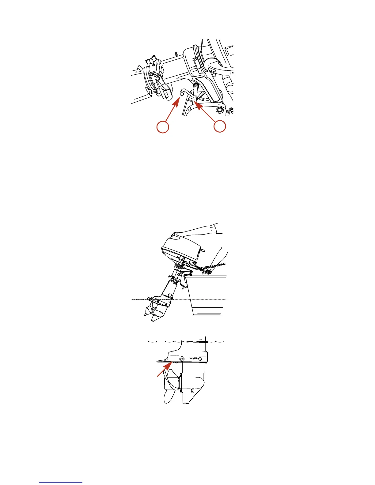 tilt position. The spring loaded tilt lock lever will engage automatically and lock the outboard in the shallow