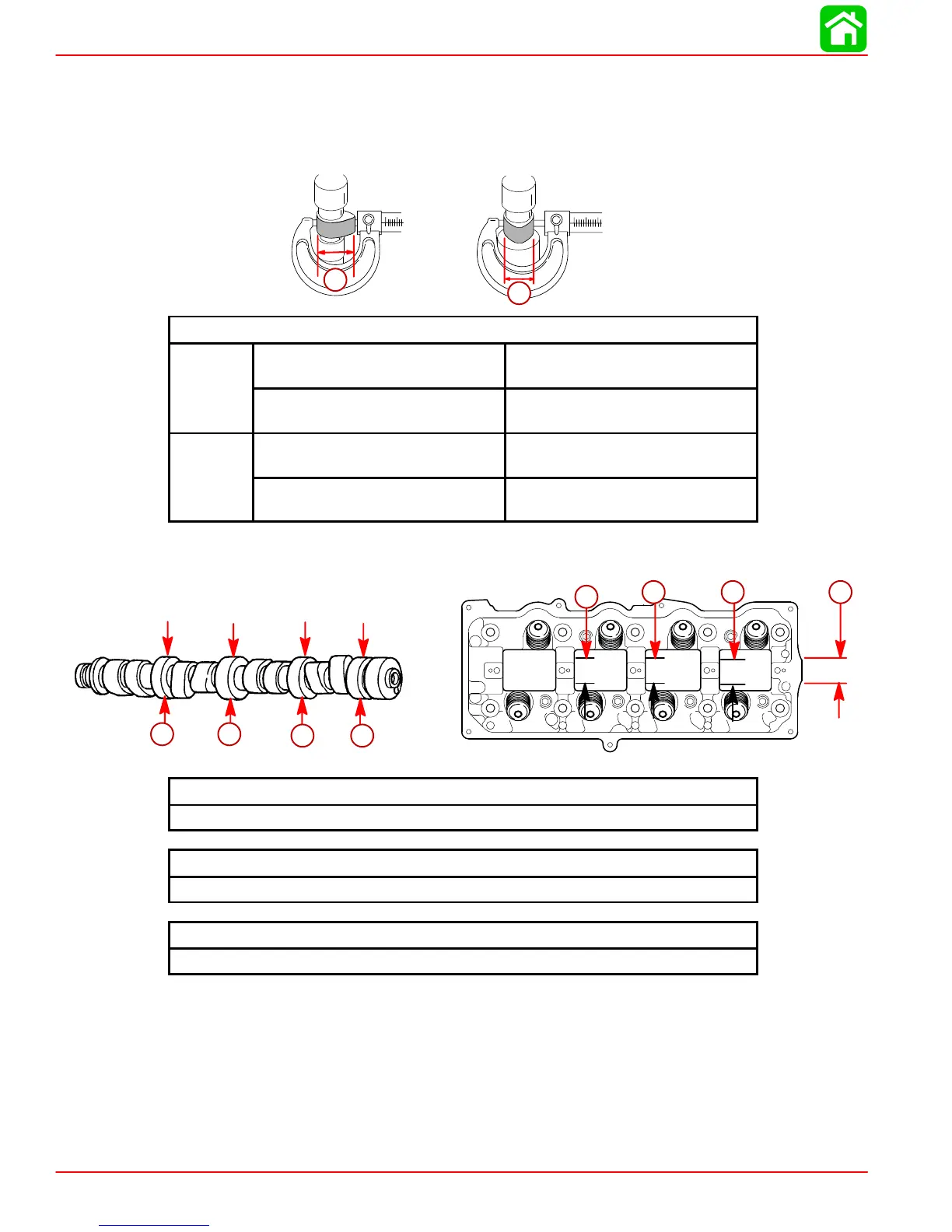 1. Inspect the camshaft for pitting, heat discoloration, scratches and for the following mea-