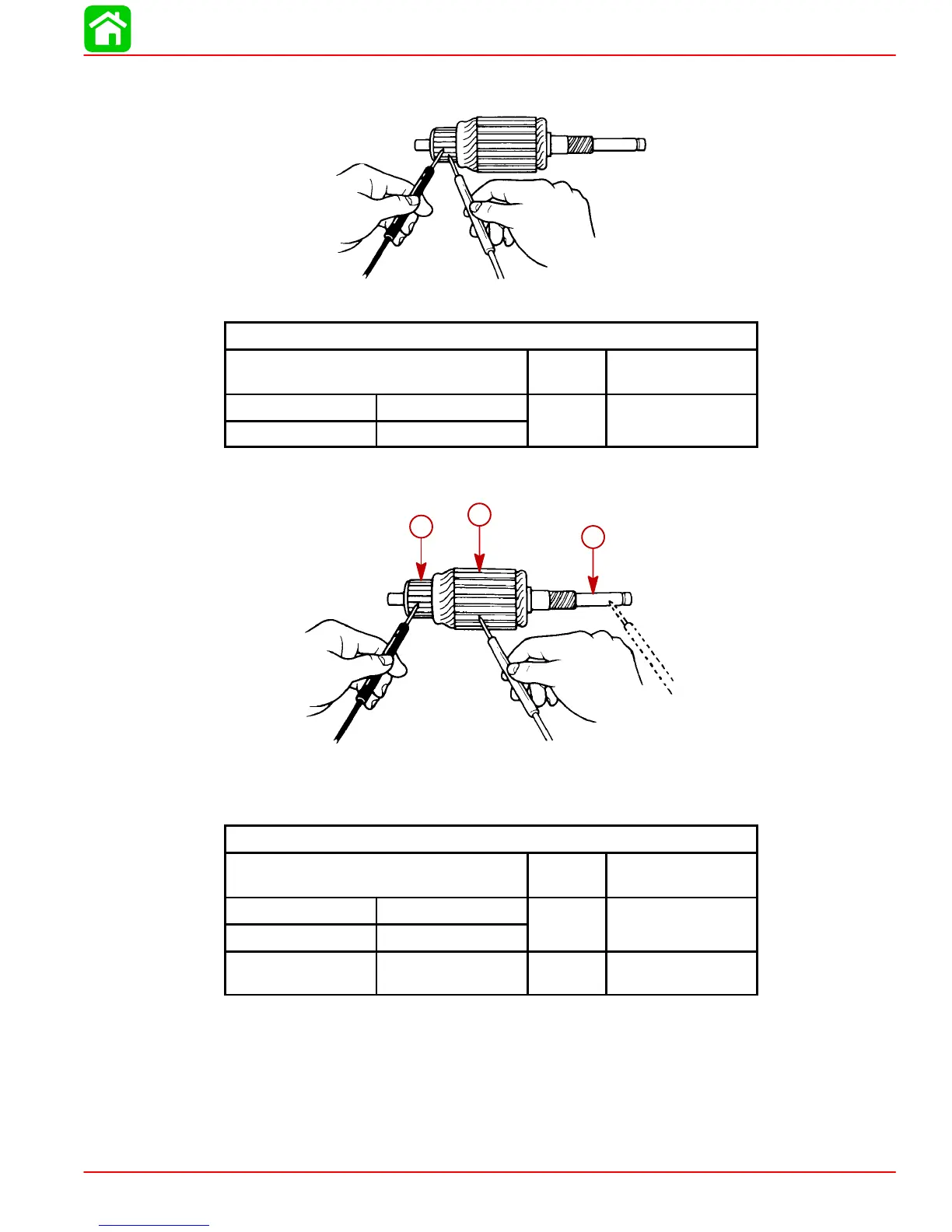 17. After cleaning, ohm test each segment of the commutator as shown. If ohm test reading