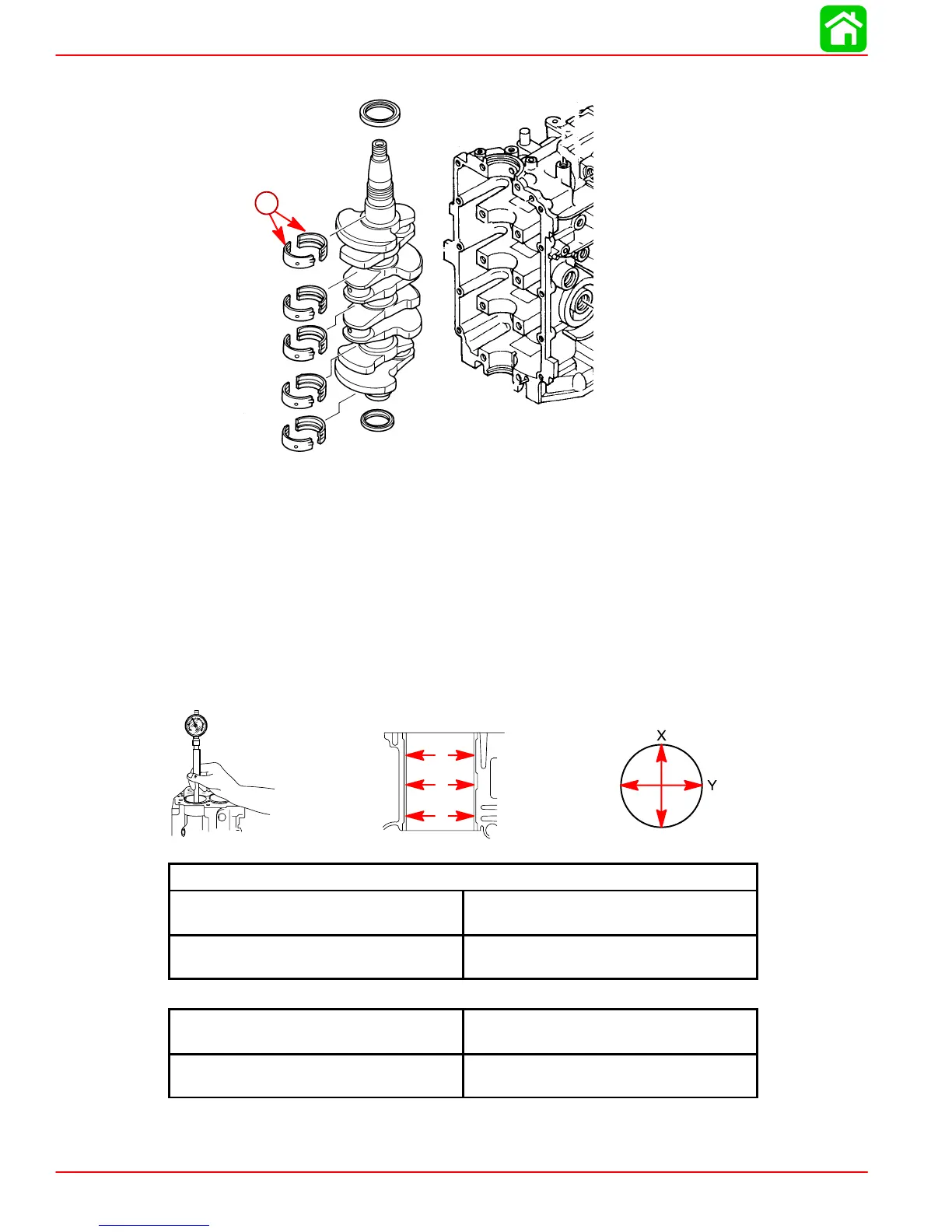 2. If the cylinder bore is beyond the standard limits listed in the tables below, it will be nec-