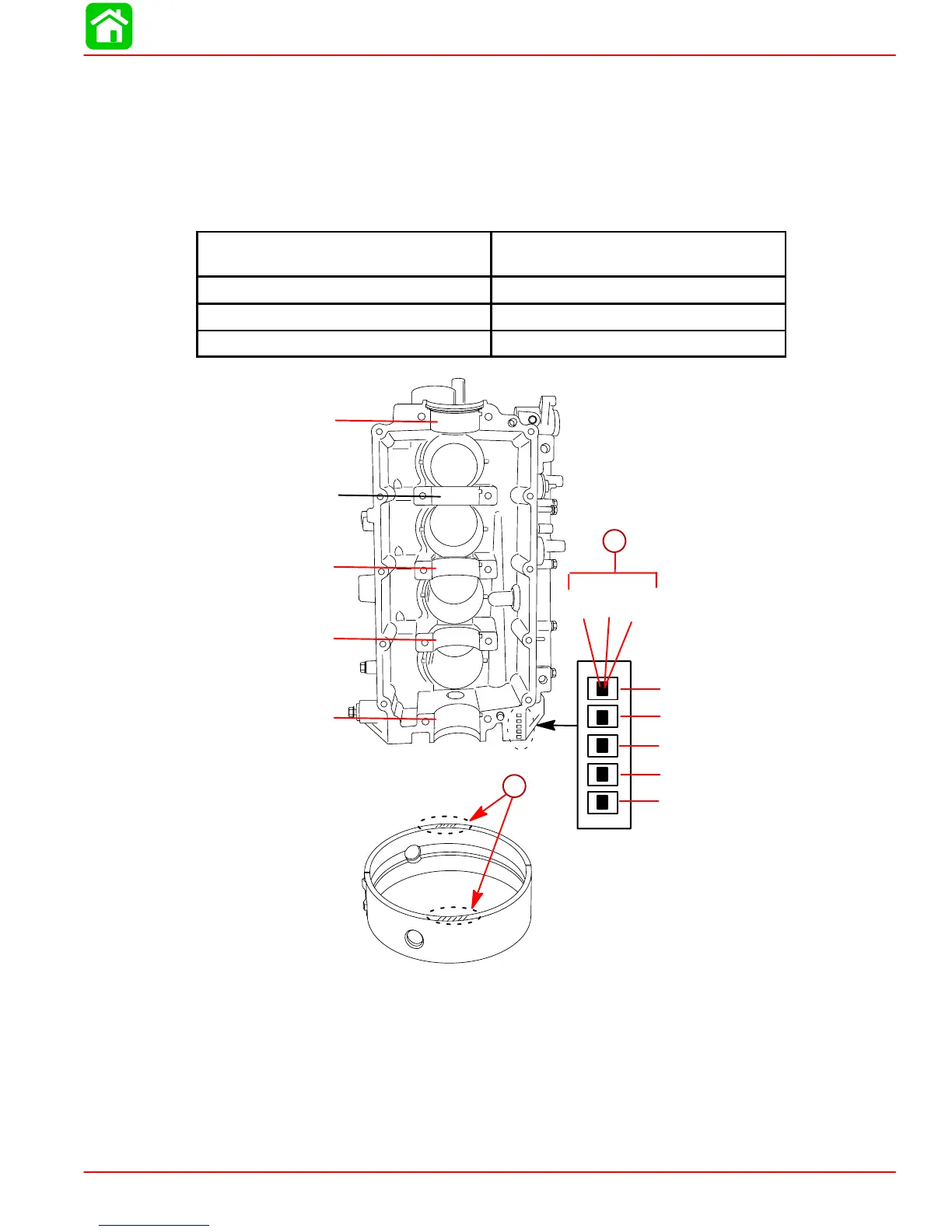 2. Refer to the following reference chart to select the correct main bearings.