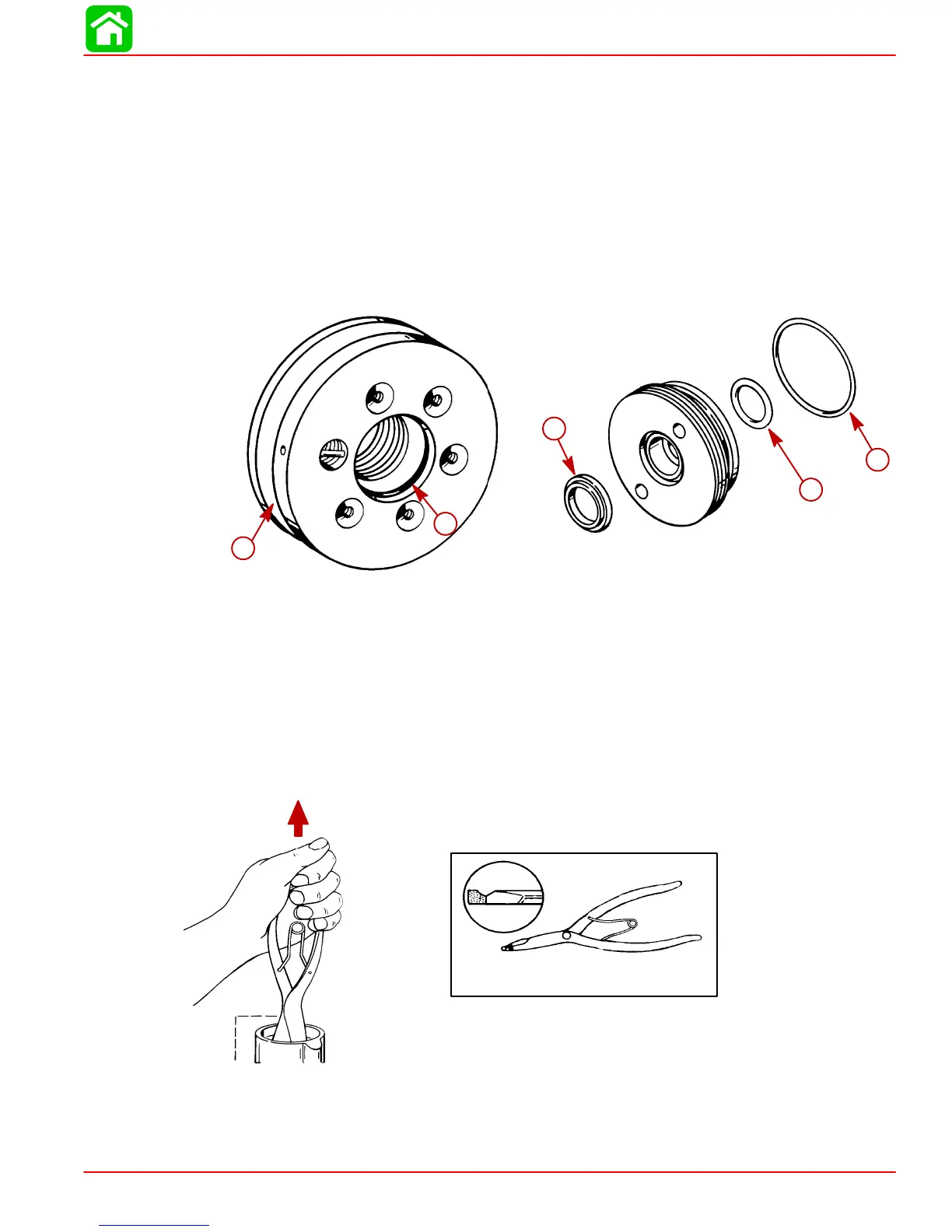 a. Using lock ring pliers P/N SRP-2 (Snap-On) or suitable tool.