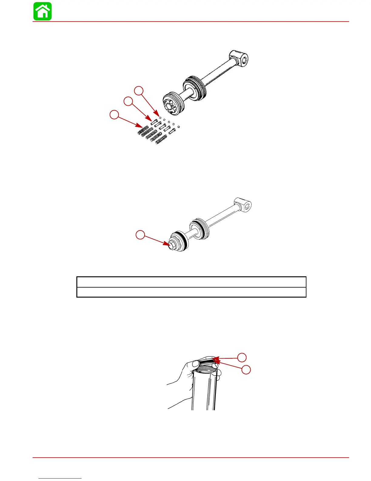 10. Install ball, seat, and spring (five sets) to shock rod piston.
