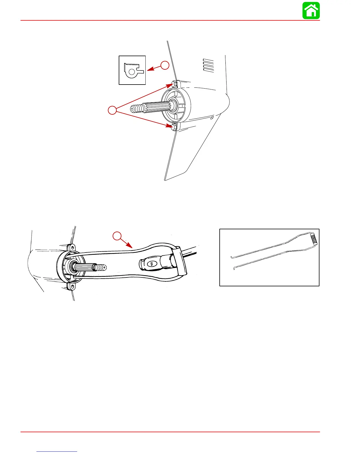 6. Remove bearing carrier attaching bolts and locking tab washers or flat washers. Discard