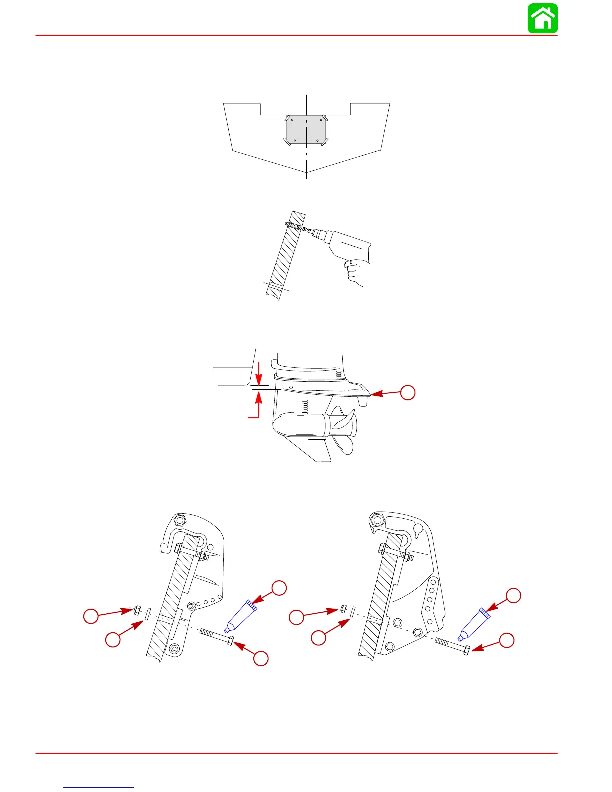 1. Attach (tape) engine mounting template (located in this manual) to boat transom.