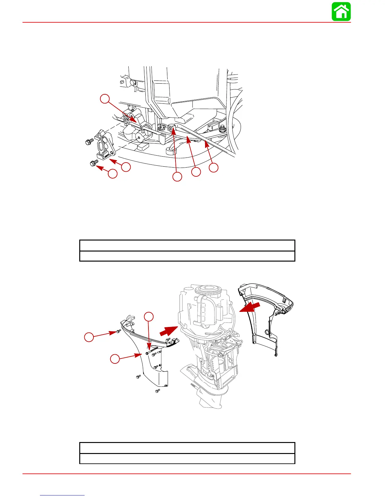 22. Secure bracket and shift rod assembly to side of powerhead with bolts. Torque bolts to