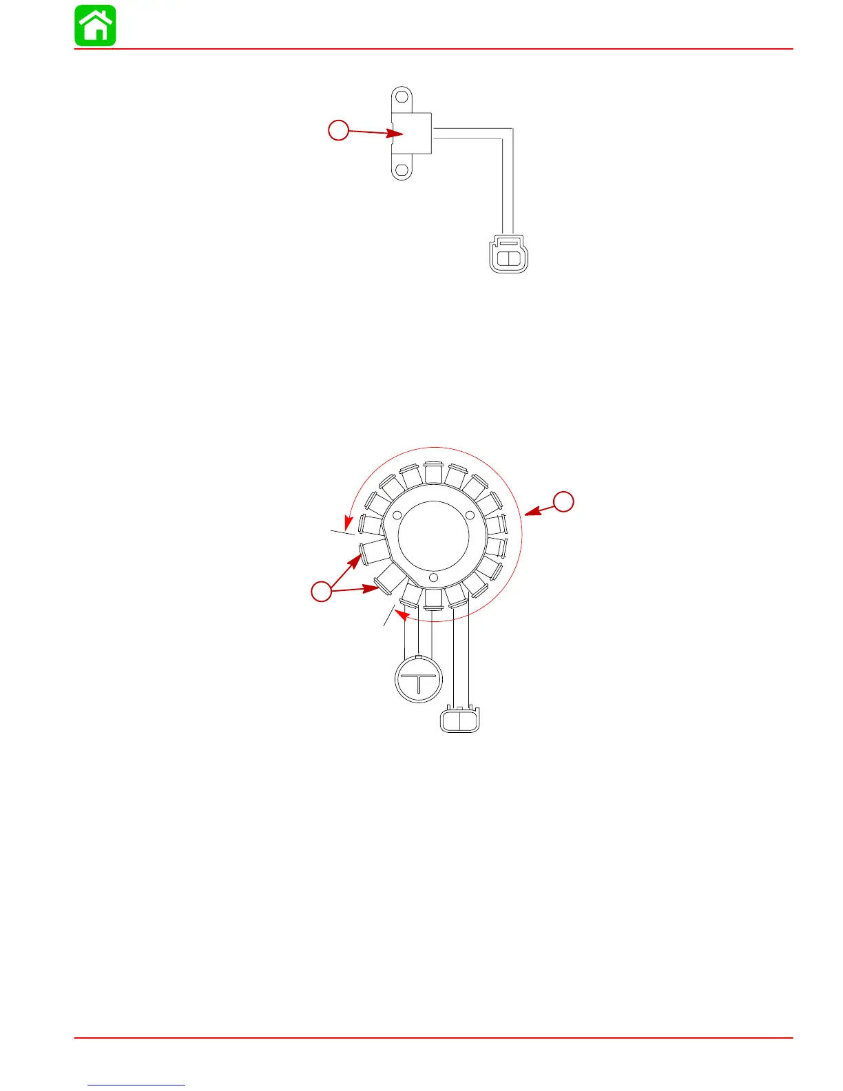 As the flywheel permanent magnets pass the respective stator coil windings, an AC pulse