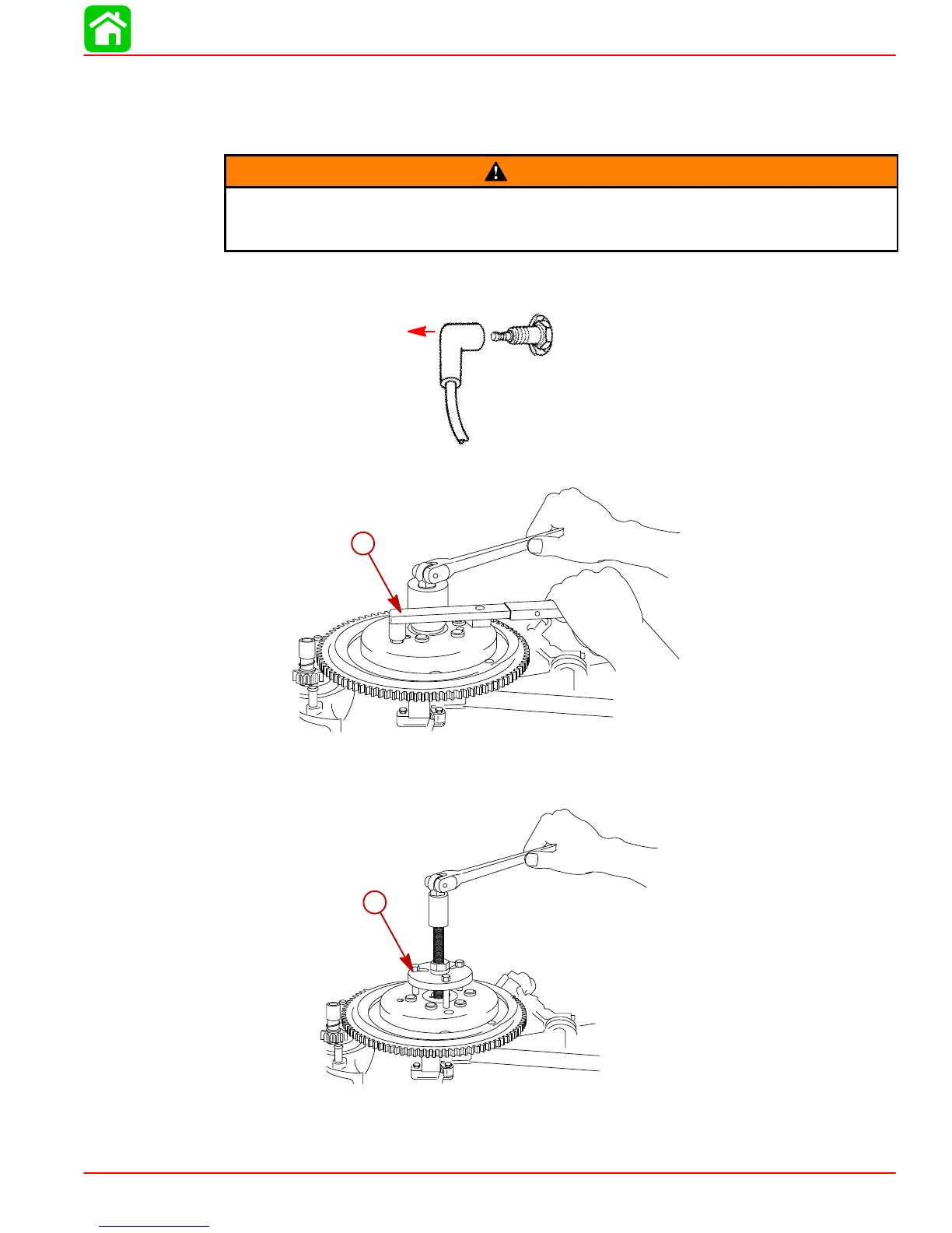 2. Hold flywheel using flywheel holder (91-83163M). Remove nut and washer.
