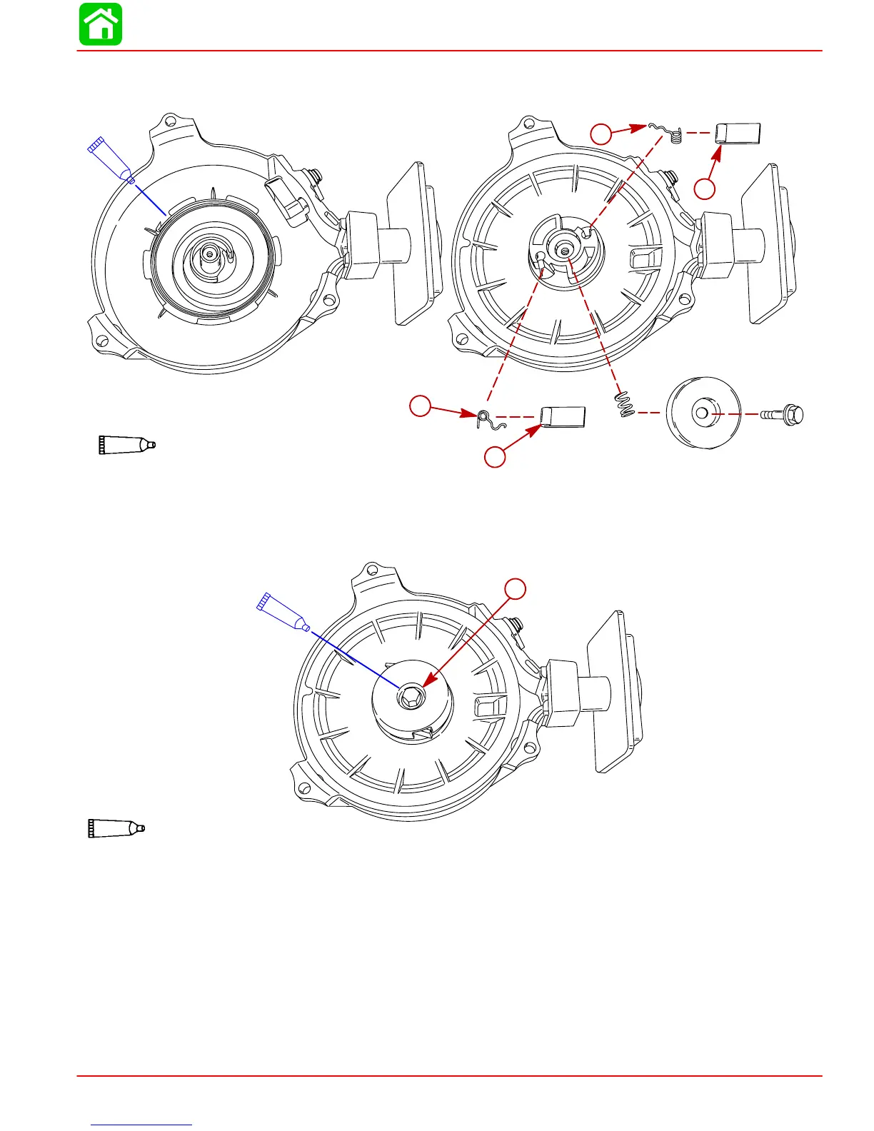 5. Apply a small amount of 2-4-C Marine Lubricant in starter housing and install sheave.