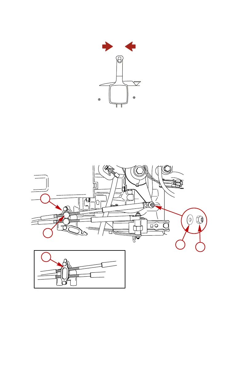 2. Install the throttle cable to the throttle arm with a flat washer and locknut.