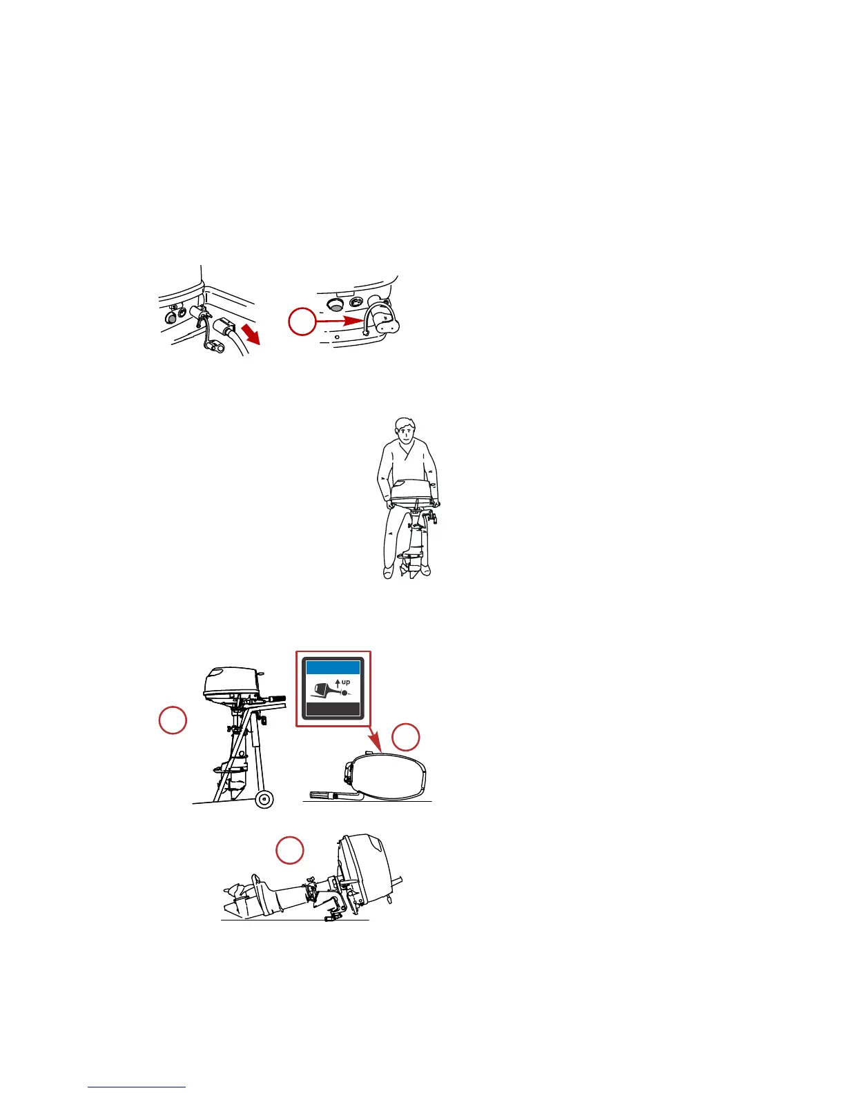 3. Carry, transport, or store the outboard in any of the three positions shown.