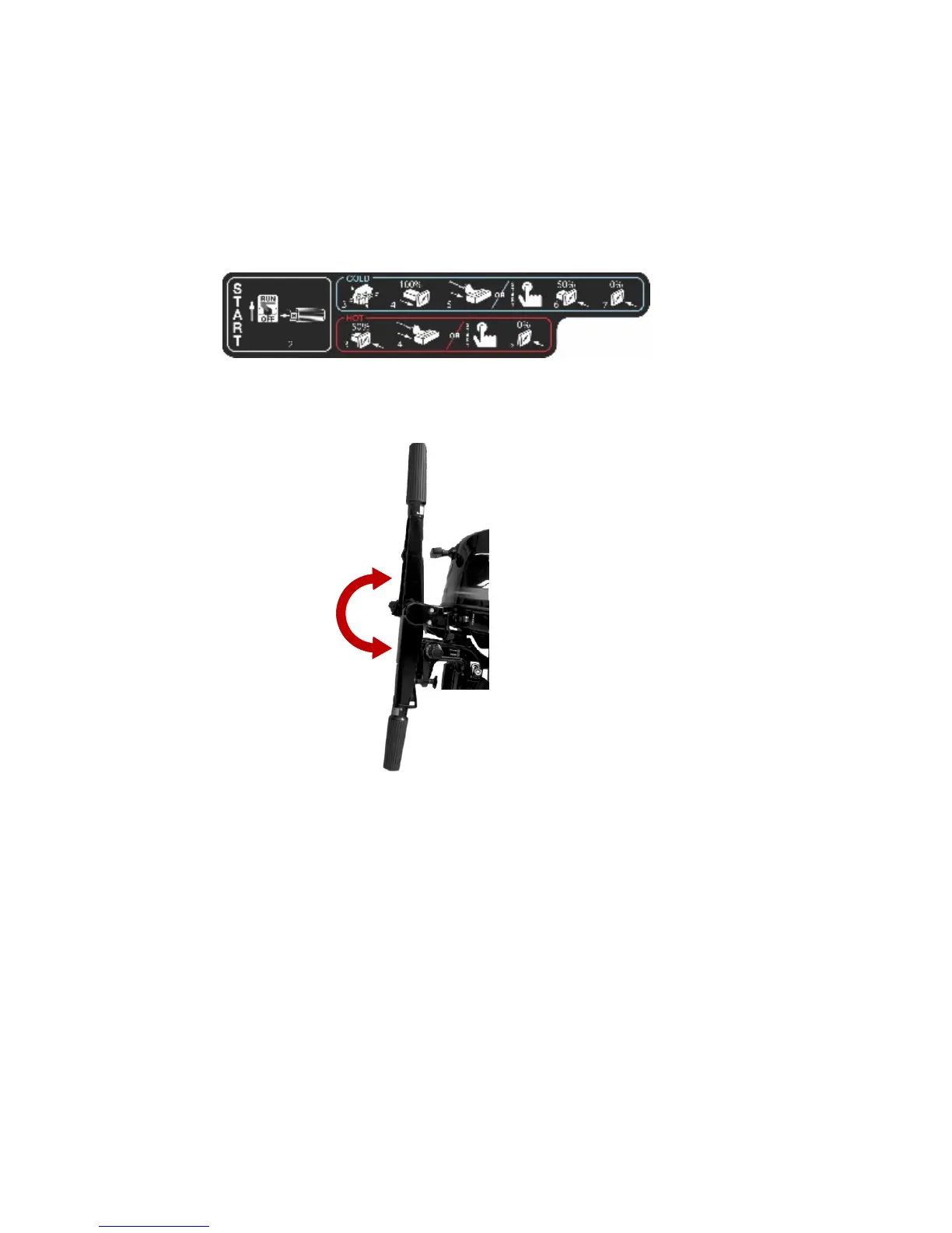 A decal on the tiller handle is a quick reference guide for starting a cold or
