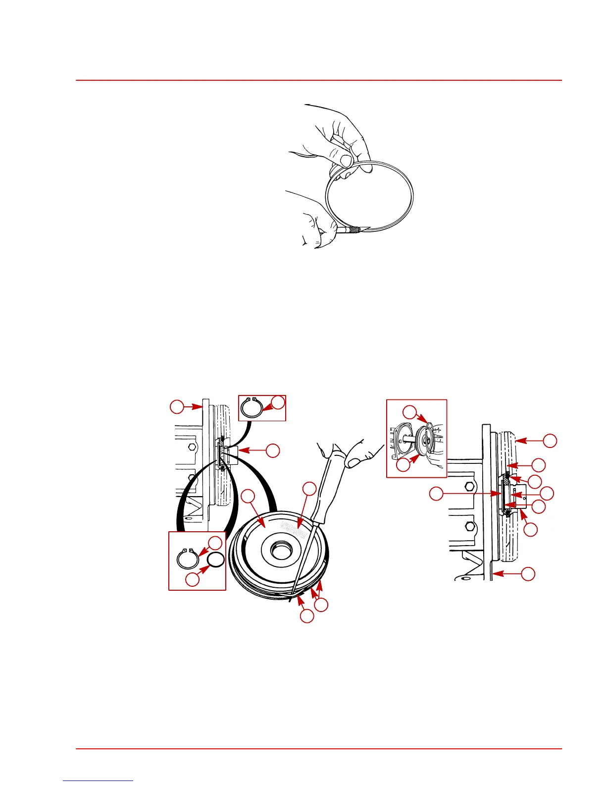 22. Slide the piston onto the shaft. Secure the piston with a snap ring.