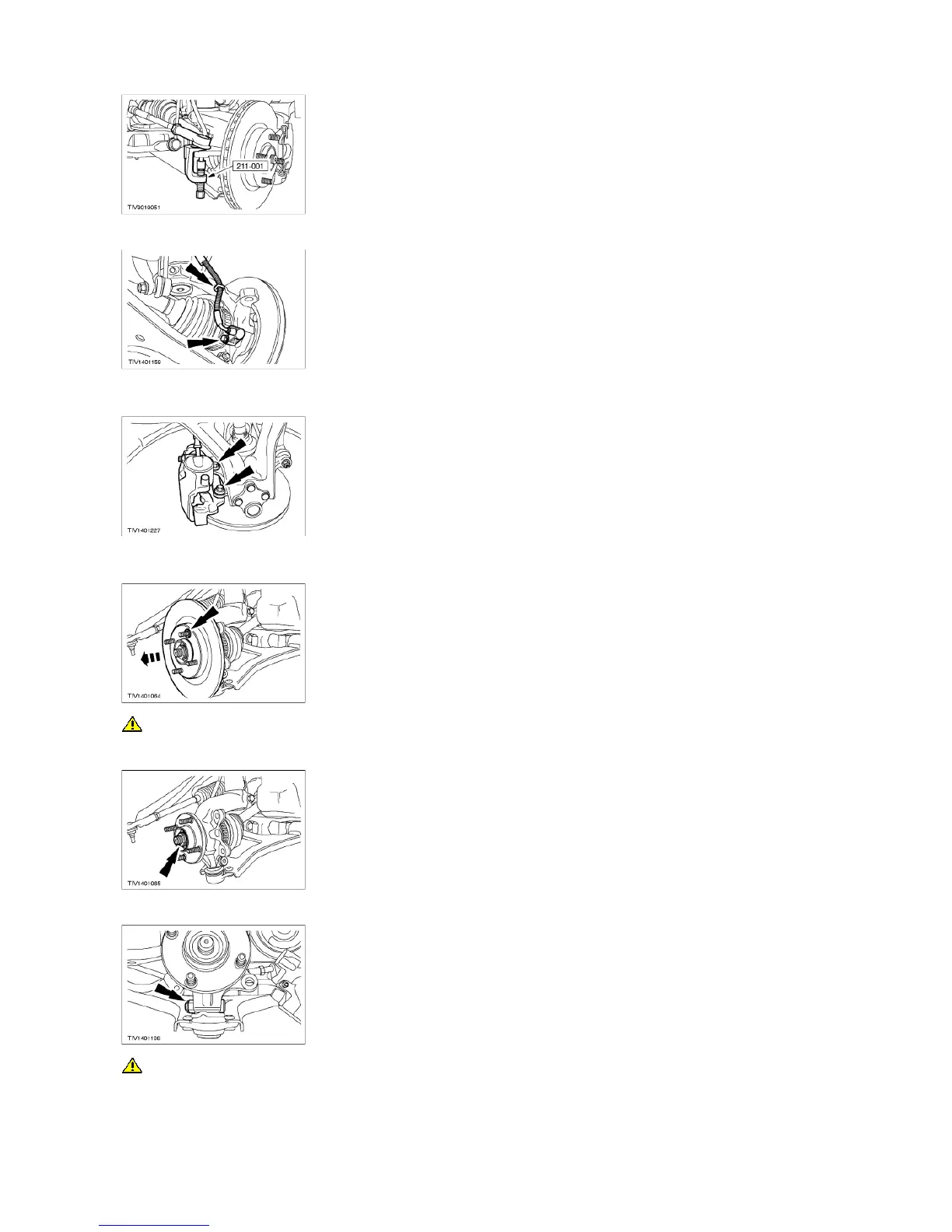Secure the caliper and anchor plate assembly out of the way to prevent damage to the flexible brake hose.