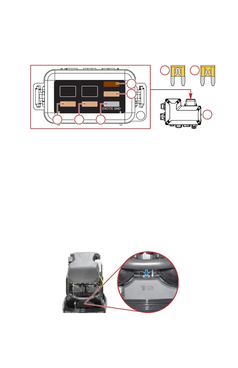 The rigging panel is equipped with three MRBF fuses, and two spares. Refer to