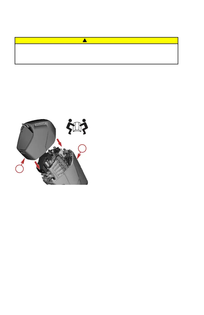 The top cowl is heavy. To avoid personal injury or damage to the cowl,