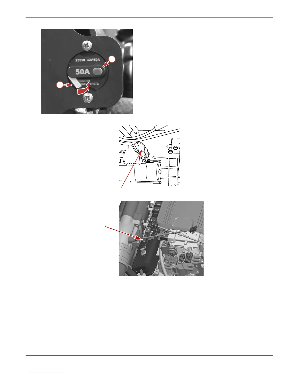 A 90 amp fuse, located on the large post of the starter solenoid, protects the engine wiring harness if an electrical overload occurs.