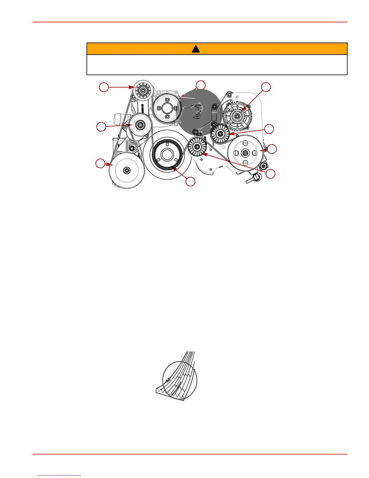Inspecting the belts with the engine running may cause serious injury or death. Turn off