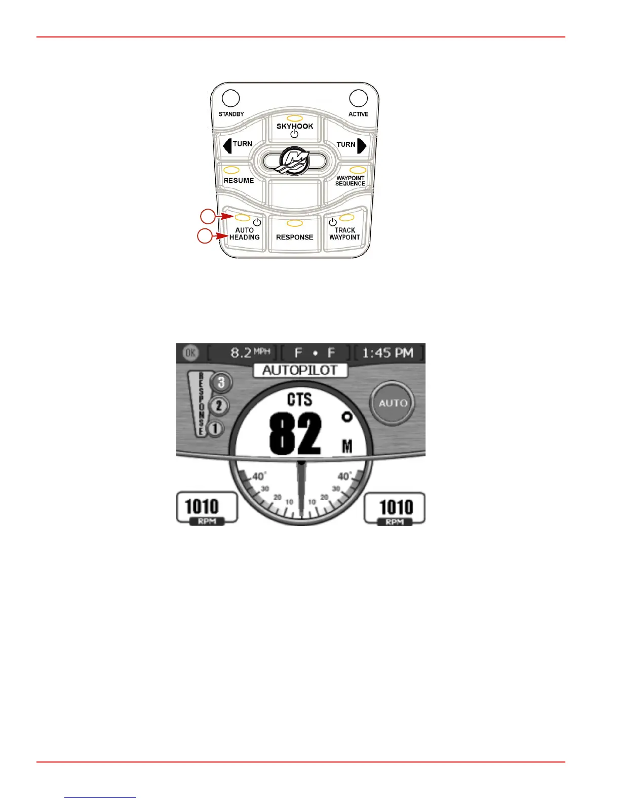 once. The button will beep twice if auto heading does not engage.