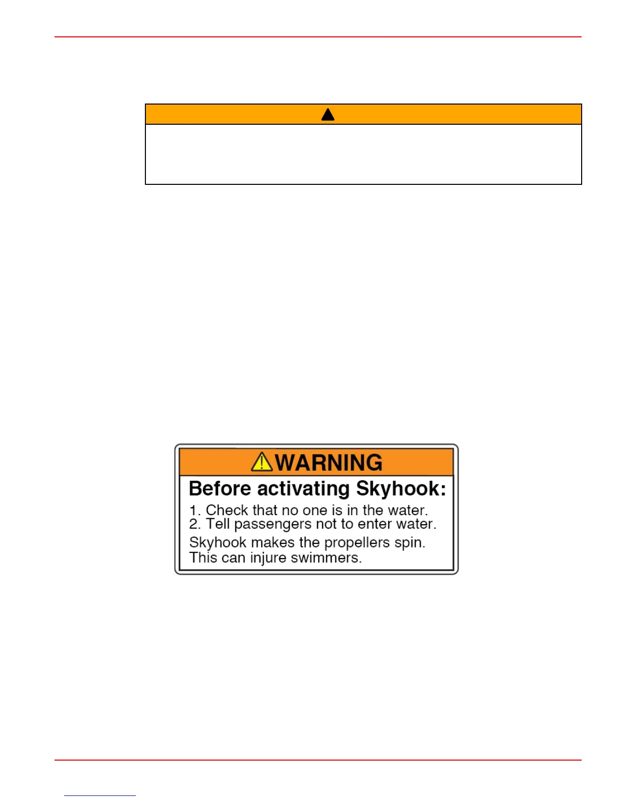 IMPORTANT: Activities in the water near the vessel while Skyhook is engaged may result