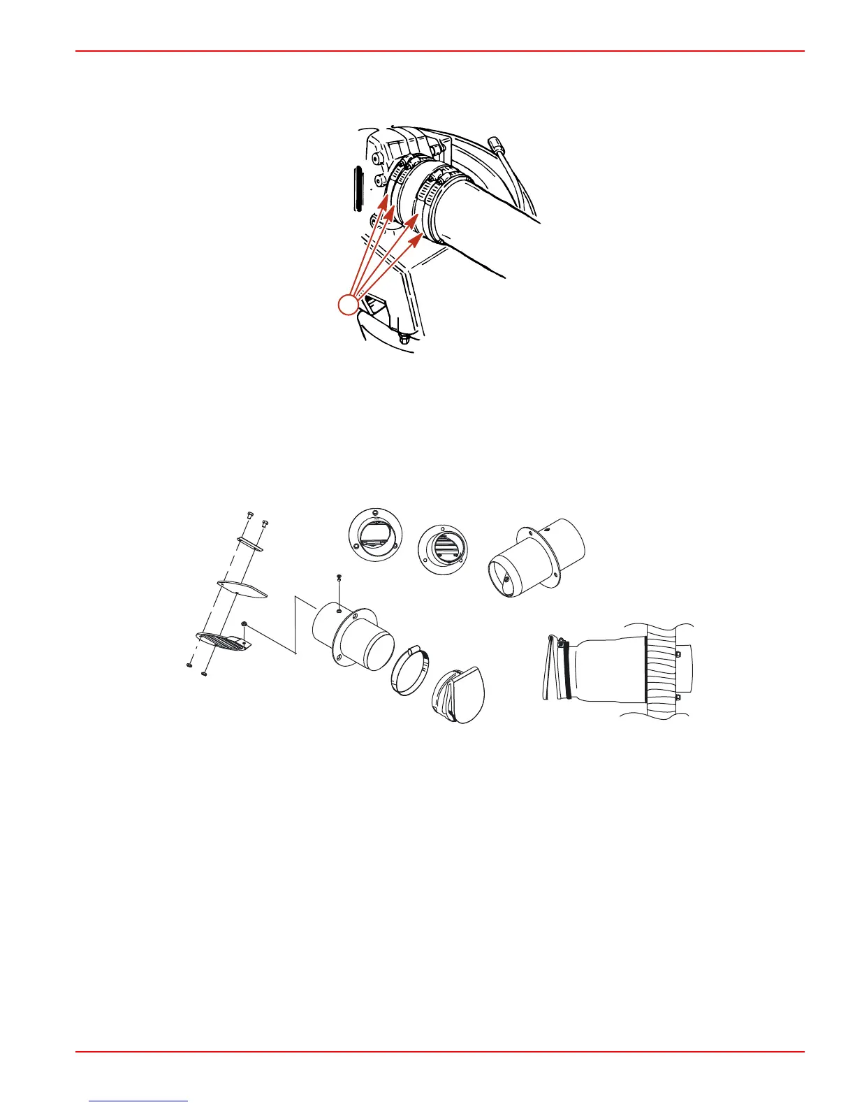 Exhaust fittings (flanges, outlets) must be equipped with an internal shutter and external