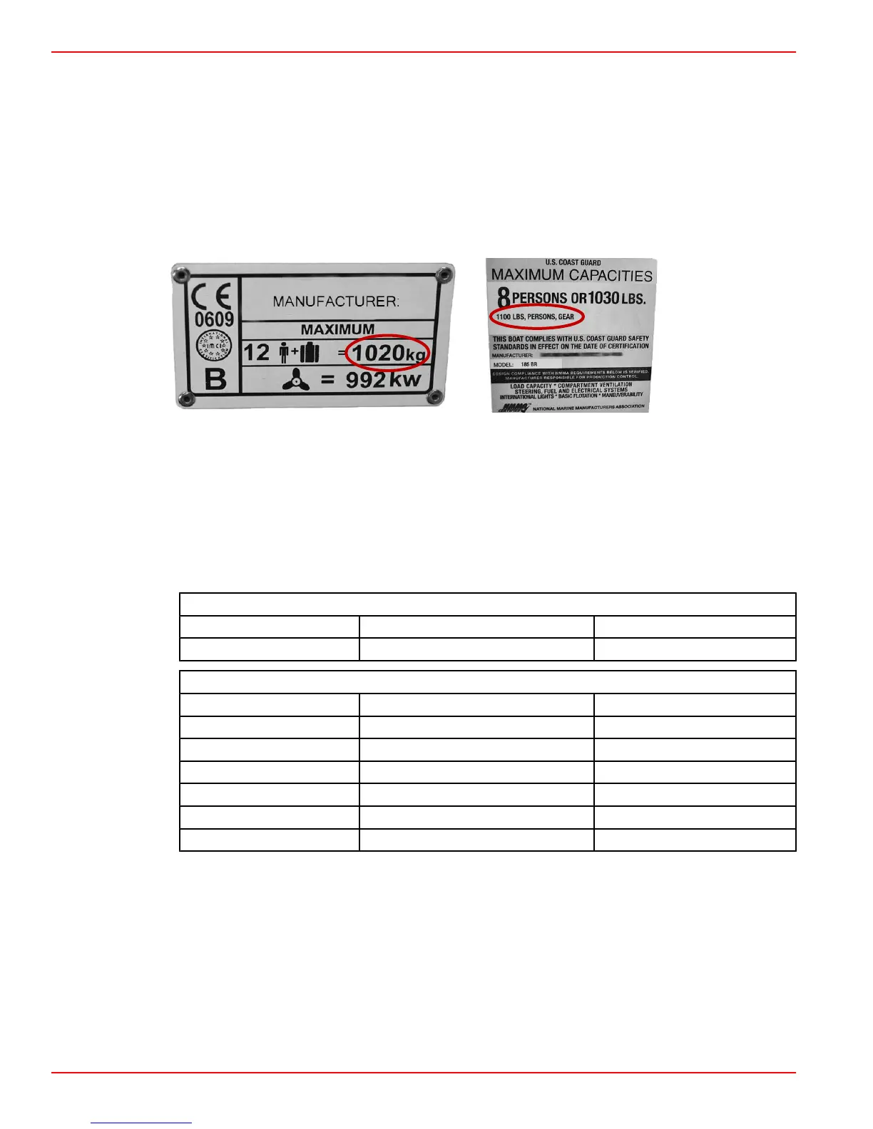 CE Capacity Plate USCG Capacity Plate