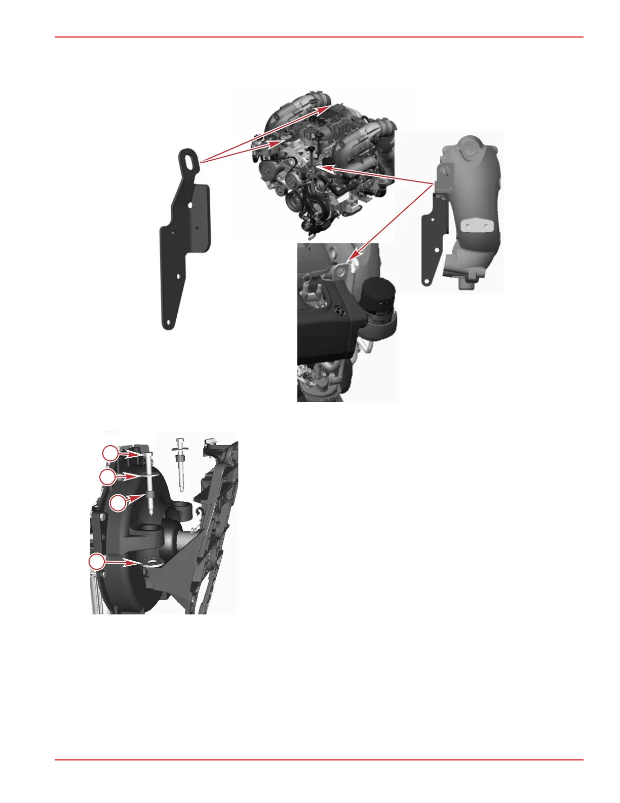 3. Support the engine with a suitable sling through the lifting eyes on the engine. Using the rear lifting eye and the opposite