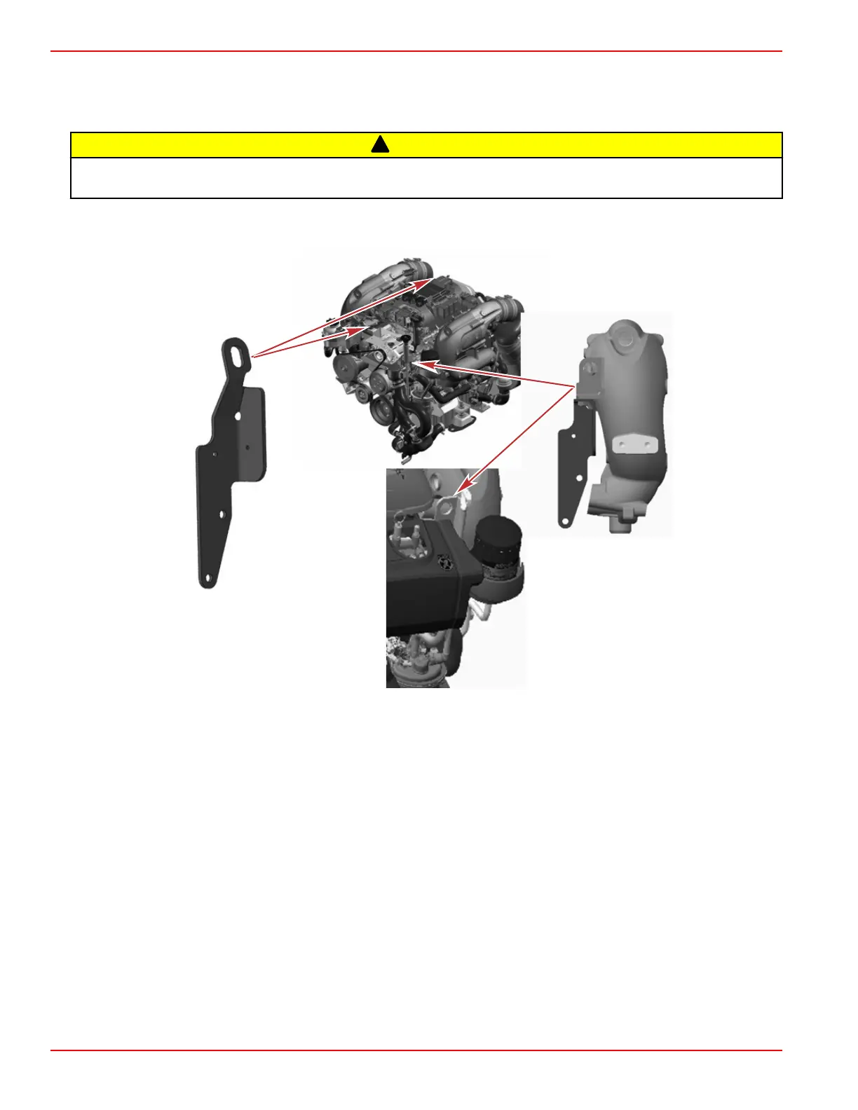 lifting arm, or other approved lifting device. Do not allow the lifting device to hook or compress any engine components.