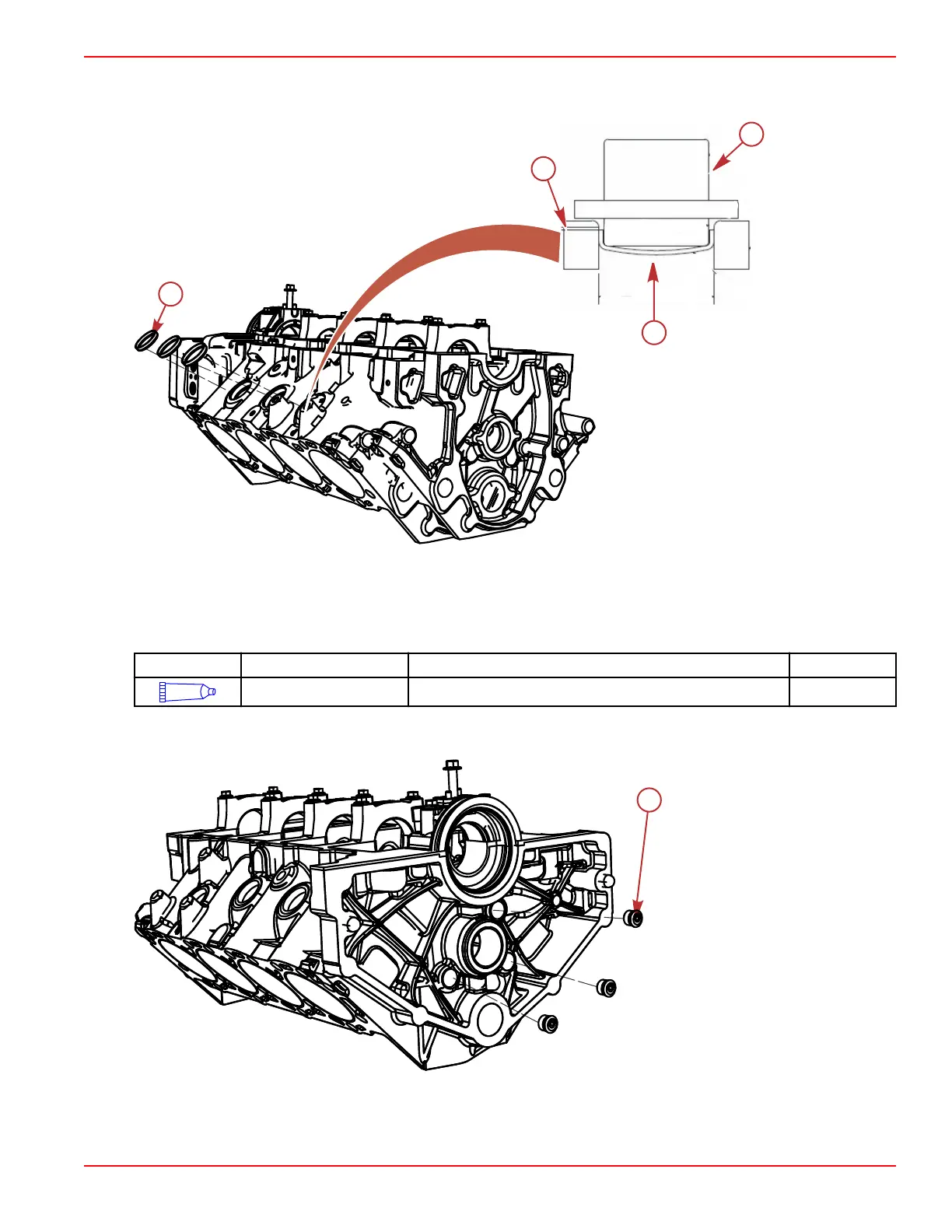 4. Install the oil gallery plugs indicated. Tighten the oil gallery plugs to the specified torque.