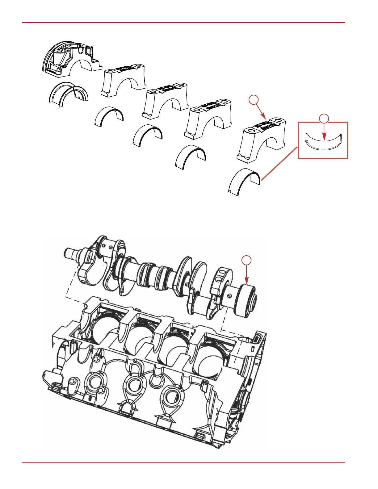5. Carefully lower the crankshaft into place. Be careful not to damage the bearing surfaces.